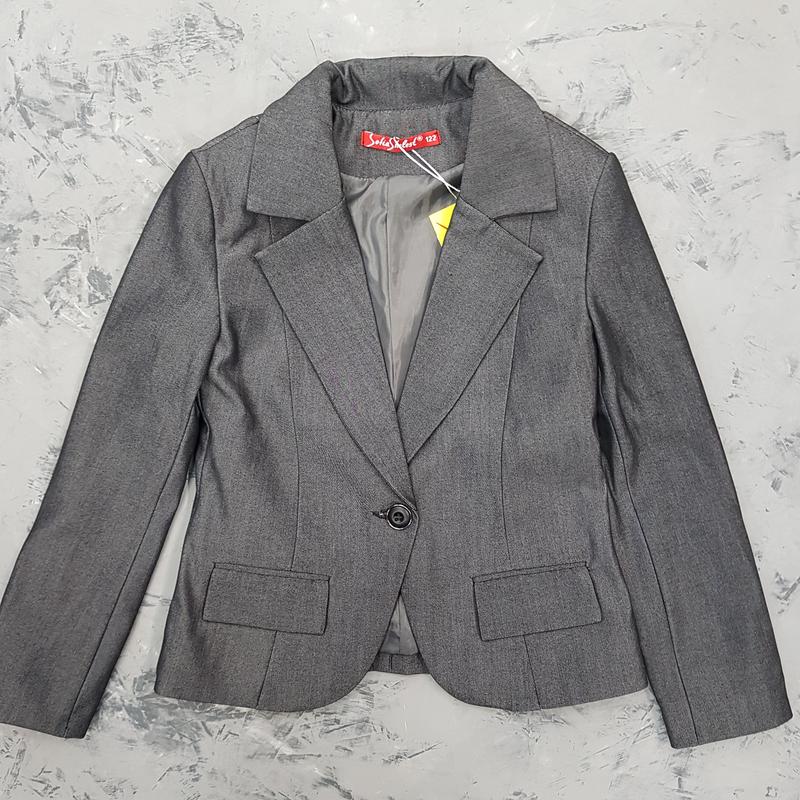 Классический пиджак для девочки. Приталенный крой, отложной воротничок пиджачного типа, застежка на одну большую пуговицу. Спереди на изделии аккуратные карманы. Цвет: серый Ткань: костюмка Размер: 140 Замеры: рукав – 52 см, пог – 36 см, длина – 50 см Доставка и оплата: - Оплата: на карту или наличными при получении. - Доставка: Новая почта, Укрпочта, Justin - Возможен наложенный платеж при предоплате 150 грн на карту