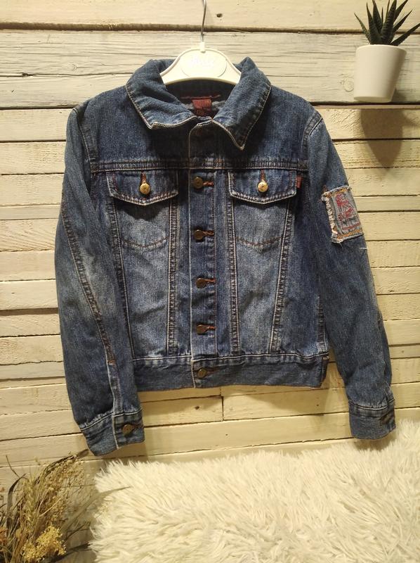 Джинсовка джинсовый пиджак куртка унисекс Размер 128 Длина - 39-40 см Рукав - 44 см Плече - 9 см Ширина - 35 см Состояние отличное, единственное на спинке показало несколько микро пятен, в носке незаметно, цена соответственно снижена)