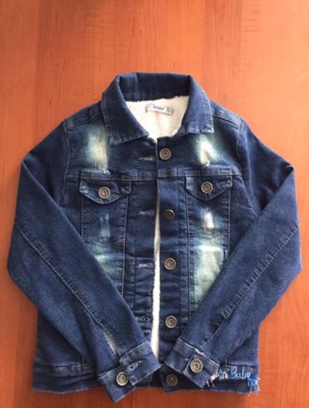 Пиджак джинсовый на девочку, утеплённый, турецкого производства. Изнутри пиджака есть тёплая подкладка, которая будет согревать вашего ребёнка, в прохладные осенние и весенние дни, особенно по утрам. Замеры: Длина по спине - 44 см Длина рукава по наружи от плеча - 46 см Полуобхват - 31 см. Размер 110-116.