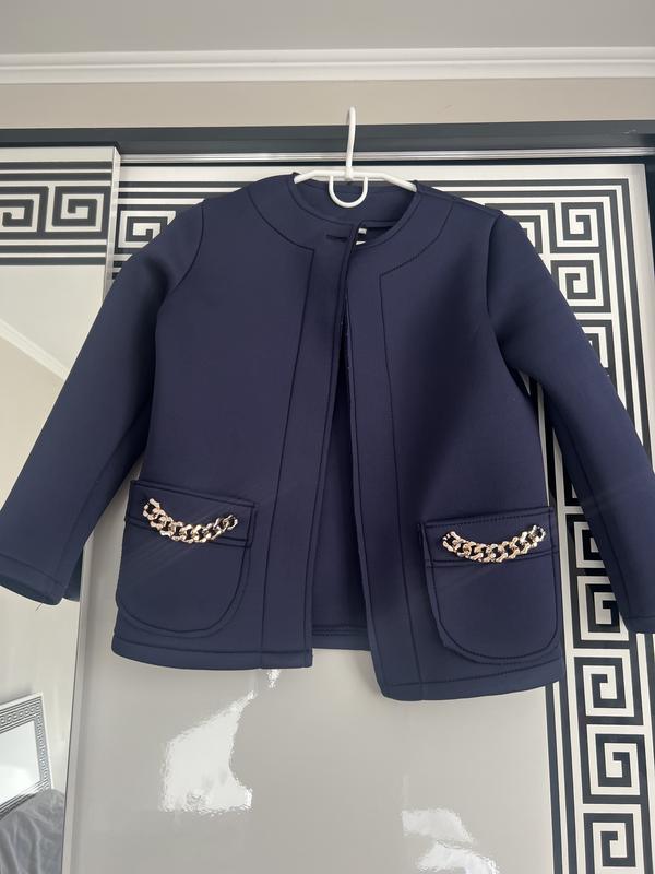 Пиджак из неопрена Тянется, не дает сверху пуговицу Идеальное состояние 146 см,рукав до подпашки 38 см В груди полость охват 46 см