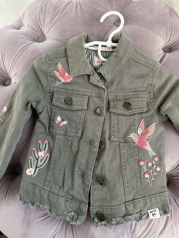 Джинсовка хаки с вышивкой от дорогого бренда mantaray