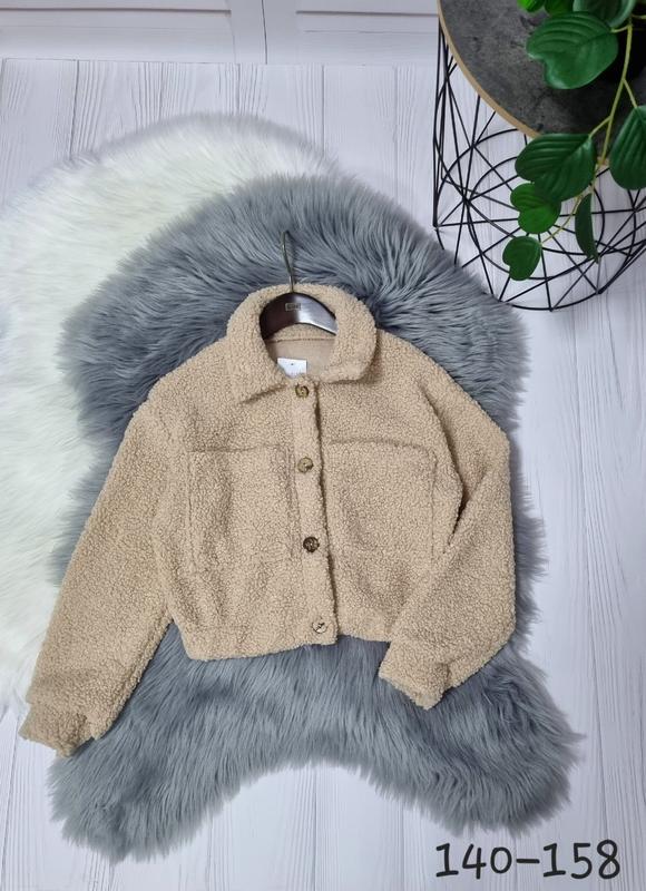 В НАЯВНОСТІ!!! Новинка, стильный жакет из ткани букле теди, застегивается на пуговицы есть два накладных кармана, и кофема на манжетах цвет капучино Размеры 140(2шт)-длина 40, пог 43,рукав 59/46 146(2 шт)-длина 43, пог 45,рукав 64/49 152(1 шт)-длина 45, пог 47,рукав 66/50