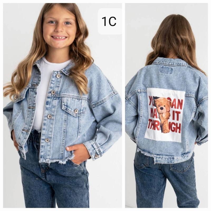 Невероятно стильная джинсовка для девочек ткань джинс, застегивается на пуговицы, рукавчики на манжетах, а накладные кармашки выглядит очень стильно! Качество супер! Длина/рукав от горловины/п********** 140-41/46/42 150-43/51/43