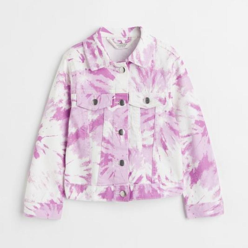 Джинсовая куртка жакет от H&M, с эластичного твила с воротником, кнопками спереди и на манжетах и декоративными нагрудными карманами с клапаном и кнопкой. Без подкладки. 122_128 Длина 39, плечи 28, рукав 45