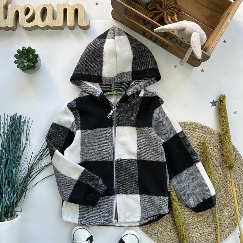 Теплая и стильная кофта в клетку- просто идеальна для осени! Застегивается на молнию, капюшон удобный. Ткань - с ангорой. Очень теплое! Размеры: 64 (110-116) – рукав 39 длина 39 полуобхват 36 68 (116-122) – рукав 42 длина 40 полуобхват 38 72 (122-128) – рукав 48 длина 45 полуобхват 40