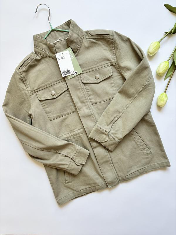 Универсальный пиджак, куртка из хлопковой саржи для девочки от бренда Н&М в трендовом цвете хаки. С воротником-стойкой, застежкой-молнией, нагрудными карманами на кнопках и прорезными передними карманами. Имеет потайной шнурок внутри на талии для регулировки ширины. Очень стильная и удобная! В сочетании с джинсами будет выглядеть удивительно!