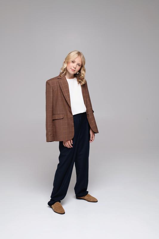 Жакет однобортный с удлиненным плечом. Размеры в наличии: 134-140; 146-152; 158-164. Состав: основна тканина 73% поліестер, 27% шовк подкладка 100% вискоза Украинский бренд одежды для девушек подростков KOSA, который только начинает свою историю.... Мы хотим подарить каждой девочке ощущение самоценности, уверенности, свободы проявки и утонченной девичести, чтобы она "одевала" на себя эти ощущения., ведь в таком возрасте это так необходимо. Иалийская ткань, внимание к крою и деталям, качество во всем.... Мы не выходим на компромиссы. Наше видение, наши ценности и то, что мы хотим передать нашей одеждой, самое главное!