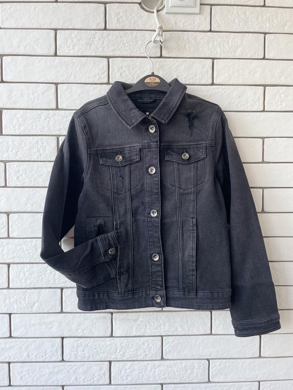 Крутая джинсовая с пайетками и потертостями. Котон эластичный, не плотный Длина - 51 см, ПОГ - 38 см, рукав - 54 см