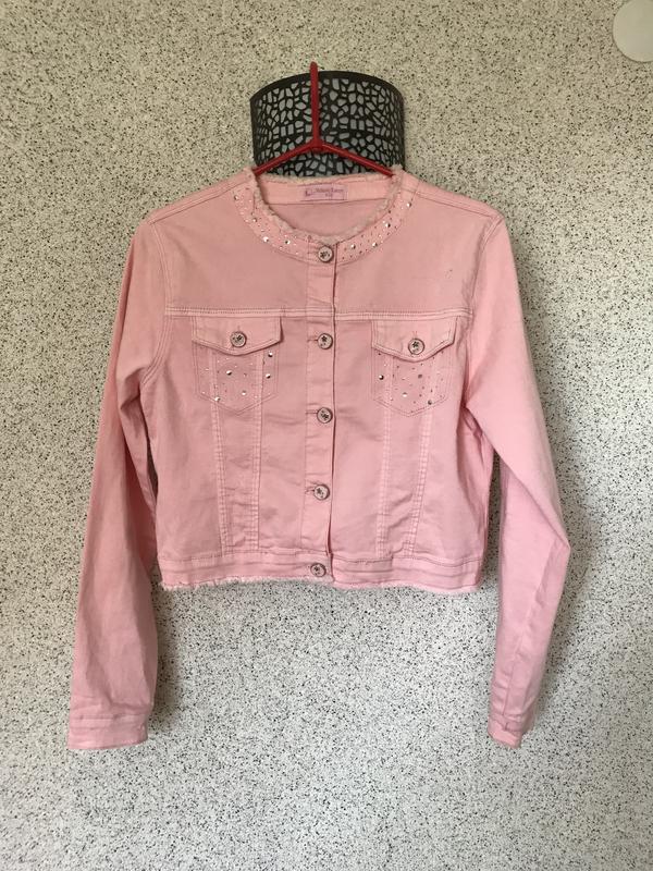 Продам укорочений джинсовий жакет для дівчат на ріст 158/164 см. Стан відмінний. як новий. Колір рожевий. Якість чудова. Джинс м’який. Довжина жакета 45,5 см Ширина по грудях 44,5 см Ширина по талії 42 см Довжина рукава від горловини 69 см, від плеча 59 см Відправлю укрпоштою та новою.