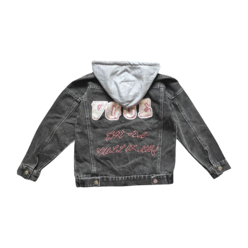 Стильная джинсовая куртка - пиджак Можно носить в более классическом стиле, или в более спортивном - с капюшоном (снимается). Также иногда подворачивали перчатку, очень стильно выглядела. Стильная, удобная, комфортная и модная. Размер 130. Можно брать чуточку раньше и носить до роста 140 см +/-. Ориентируйтесь на измерения. Замеры: рукав 56 см, по 42 см, длина 52 см. Курточкой были очень довольны. Состояние отлично.