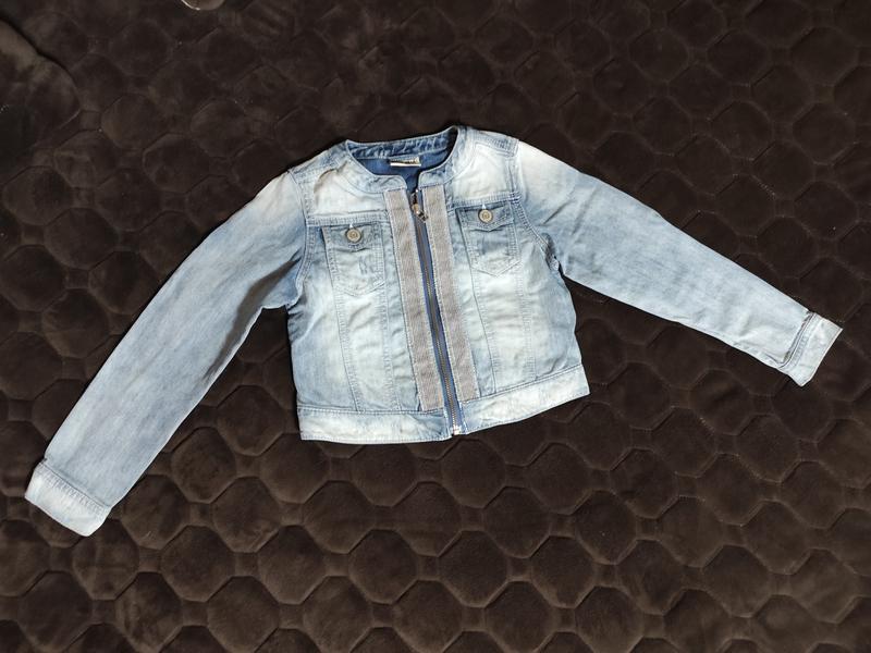 Фирменный джинсовый укороченный пиджак. Стильный и красивый. На девочку 128-134р. Замеры: плечи 29 см, грудь 37 см, рукав 47 см, длин 38 см