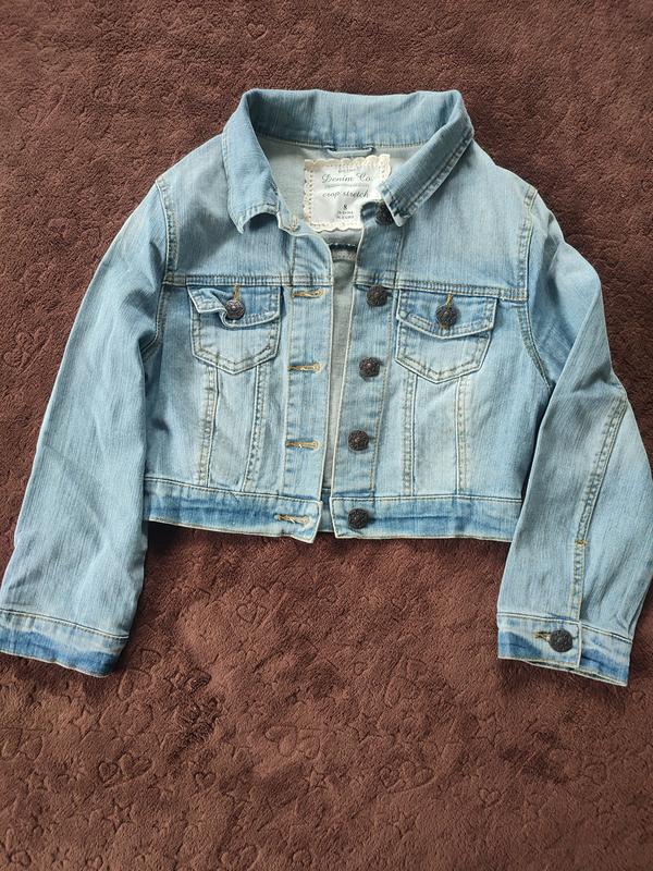 Классная укороченная джинсовка для девочек. Рукав длинный. красивый голубой джинс