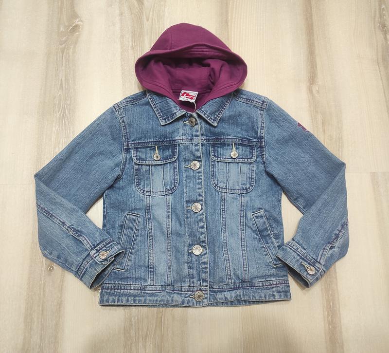 Джинсовая плотная куртка с имитацией балахона, джинсовка на 7-8 лет Замеры НИЖЕ ! Состояние очень хорошее, никаких видимых дефектов и нюансов нет! Есть только 2 небольших пятнышка от краски на рукаве и на плече сзади- вообще не видно при носке (на фото с коллажем показала) Качество супер, плотный джинс 100%, не тянется. Потертости все фабричные. Плотный полуподклад внутри. Указан размер 128, но можно раньше - смотрите внимательно Замеры : длина 46 ширина в груди 38,5 рукав - от плечевого шва 46 см (шов 37 ) плечи 34 низ 38 Фото на теле - НЕТ Отправка только Новой или укрпочтой.