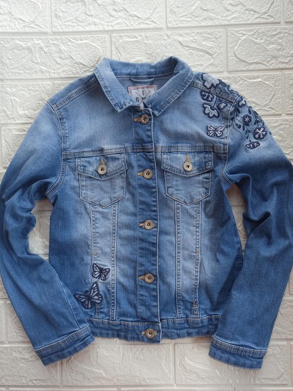 Очень красивая джинсовая куртка за біркою 140см., 10р. состояние идеальное. сток. если нужно замеры пишите📩.