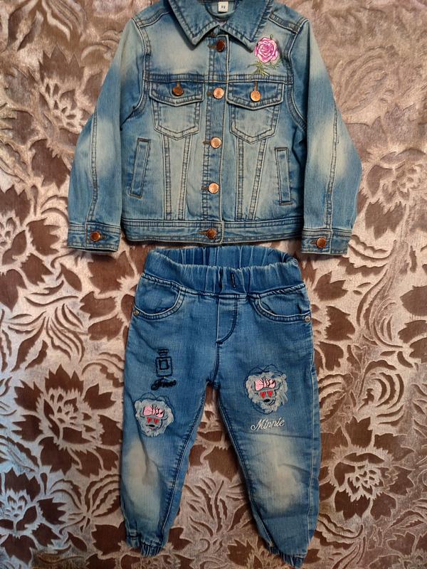 Джинсовый пиджак+ джинсы джогеры на девочку 4-5лет в идеальном состоянии. Могу отправить по полной оплате Укр или Новой почтой.