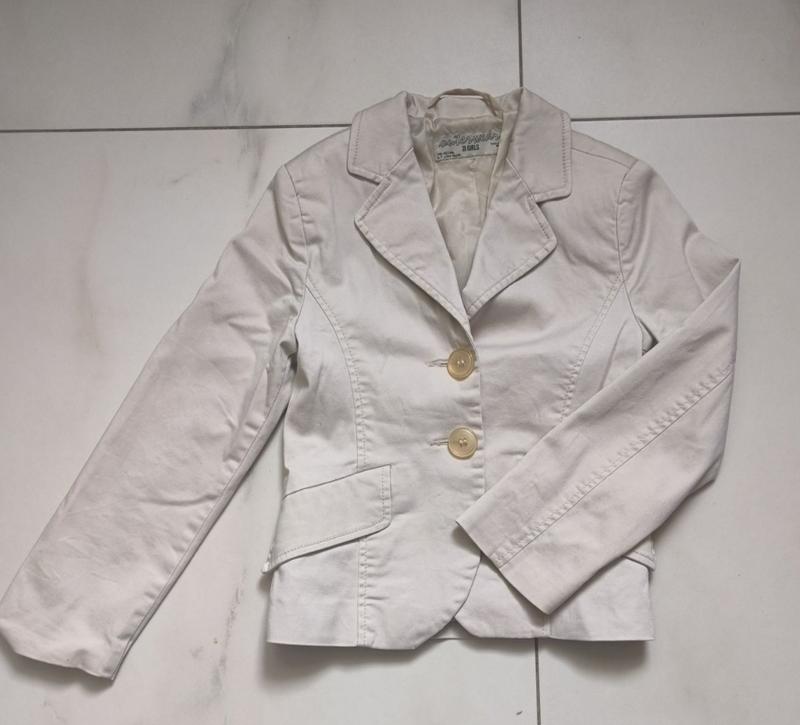Стильный жакетик на девочку молочно-бежевого цвета. Размер 116-122 (5-6р.). Заміри є на фото. В идеальном состоянии - одевался несколько раз.