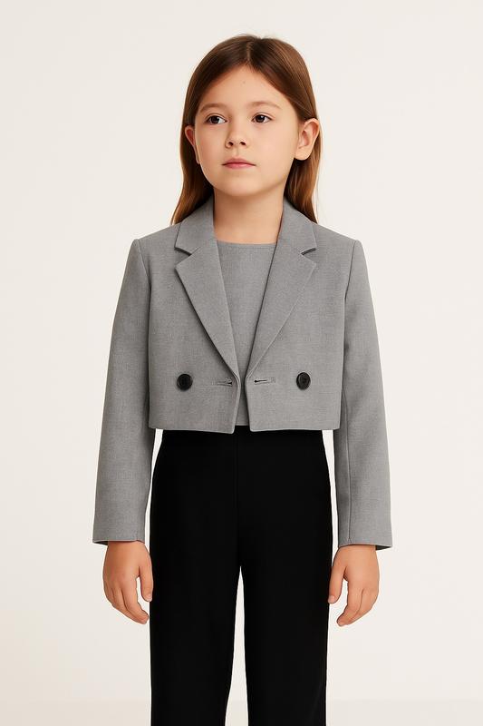 Стильний укорочений піджак ZARA для дівчинки, розмір 6–7 років (120 см). Модель у сучасному крої — коротка довжина, класичний комір, два ґудзики спереду та декоративні ґудзики на рукавах. Колір — світло-сірий меланж, гарно поєднується з будь-яким одягом: сукнями, штанами, спідницями. Матеріал приємний на дотик, підкладка гладенька, якісно пошито — фірмовий стиль ZARA Kids. Стан ідеальний, без плям чи потертостей. Підійде як для школи, так і для урочистих подій чи фотосесій. 📏 Заміри: • довжина — 36 см • ширина під пахвами — 34 см • довжина рукава від плеча — 44 см • довжина рукава від пахви — 31 см • плечі — 29 см