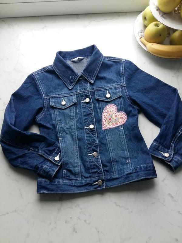 Стильный джинсовый пиджак, куртка TESCO на 7-8 лет с различными фирменными нашивками. Очень модный фасон в стиле оверсайз. Замеры: плечи- 33, грудь- 35, рукав- 44, длина по спинке-43. Состав: 100% хлопок
