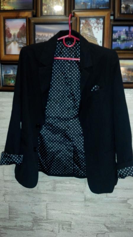 Очень красивый фирменный пиджак подкладка чёрно-белый горох, идёт на рост 152 см, где-то на 11 лет, зависит от роста ребенка, ориентир на замеры- длина по спинке-59 см, плечи ширина-35 см, рукав от шва вниз-55 см (полная длина), но он подварачивается , по бокам присутствуют кармашки, на плечиках небольшая подкладка, даже не наплечике а на лопатке чтоб не натерал рюкзак, небольшая, еле прощупывается, но мягкая. So New York/возможна пересылка., бесплатная доставка джастин по акции безопасная сделка