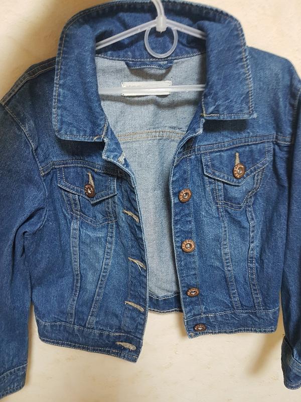 Джинсовый пиджак в отличном состоянии Р. 146-152 (смотрите замеры) Длина от плеча 39см., ПОГ 46см., рукав 3/4 -44см., плечи 38см.
