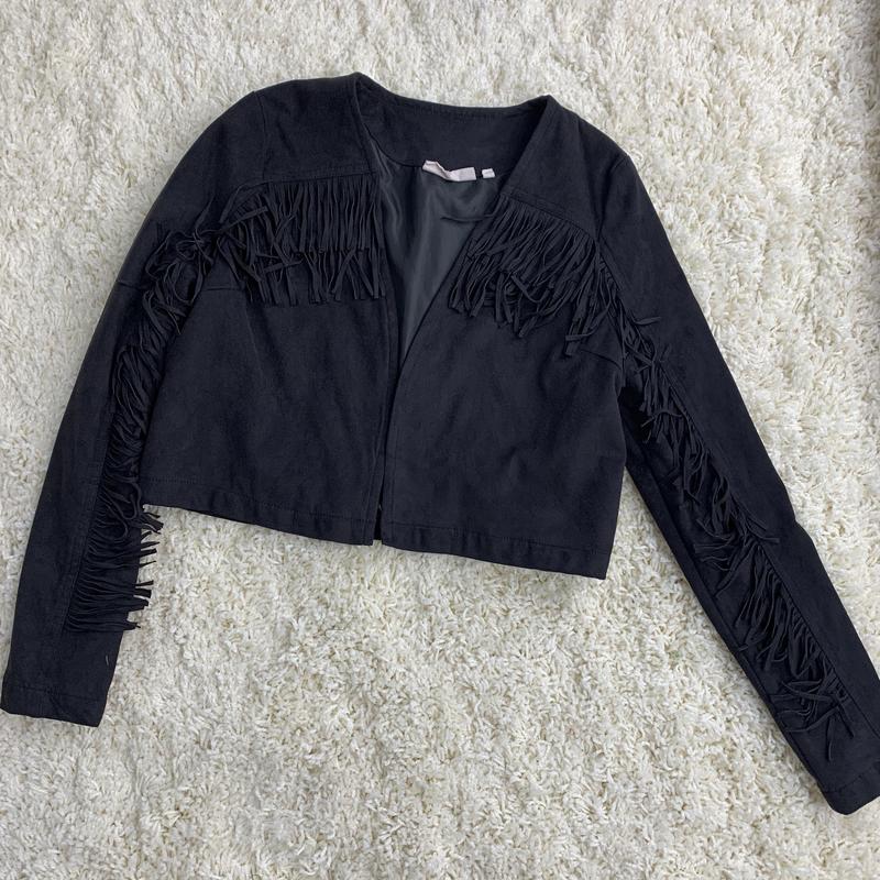 Пиджак под замшу с бахромой. Без застежки . На подкладке Длина 42 Пог 46 Плечи 34 Рукав 60