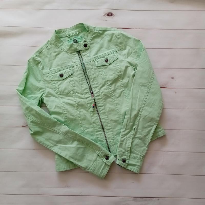 Рада приветствовать Вас у меня на страничке. Подписывайтесь и всегда будете в курсе обновлений. Сегодня в продаже: куртка красивого насыщенного мятного цвета (камера к сожалению не передала) состояние новой без бирки замеры: длинна воротника-стойки 3см длинна по центру спинки от воротника 51см в т.ч. высота манжета по низу 5см длинна плеча 10см длинна рукава от плеча 60см ширина по плечам 36см полуобхват по груди 41см полуобхват по талии 38см полуобхват по низу 43см