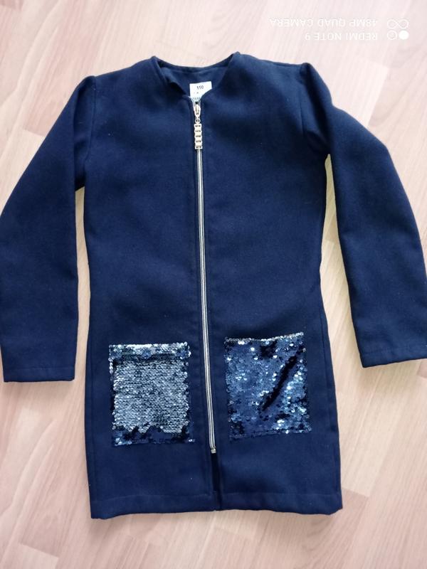 Шерстяной синий тренч, пальтишко для девочки. На замке. Карманы с паетками- перевёртышами. Носилось 2 раза. Состояние новой вещи. Написана длина 110 см, но реально большемерит, подойдёт на 116-120 см. длина - 62 ширина 32 длина рукава от горловины - 51 все дополнительные фото и замеры предоставляю