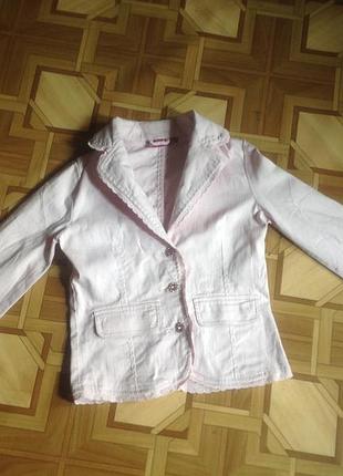 Джинсовый пиджак на девочку бледно-розового цвета из облегчённого коттона.Пиджак декорирован тесьмой "шитьё".Очень красиво и элегантно смотрится,ничего лишнего в дизайне.ПОГ 40 см, ПОТ 34 см,длина изделия 47 см,длина рукава от шеи 55 см.Есть джинсы, продаются отдельно.Смотрите мои другие объявления.