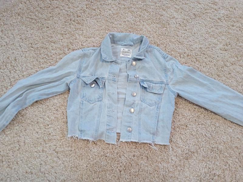 крутий джинсовий піджачок, Pull and Bear, пише 26 розмір, S, носили на 155 см, стан ідеальний