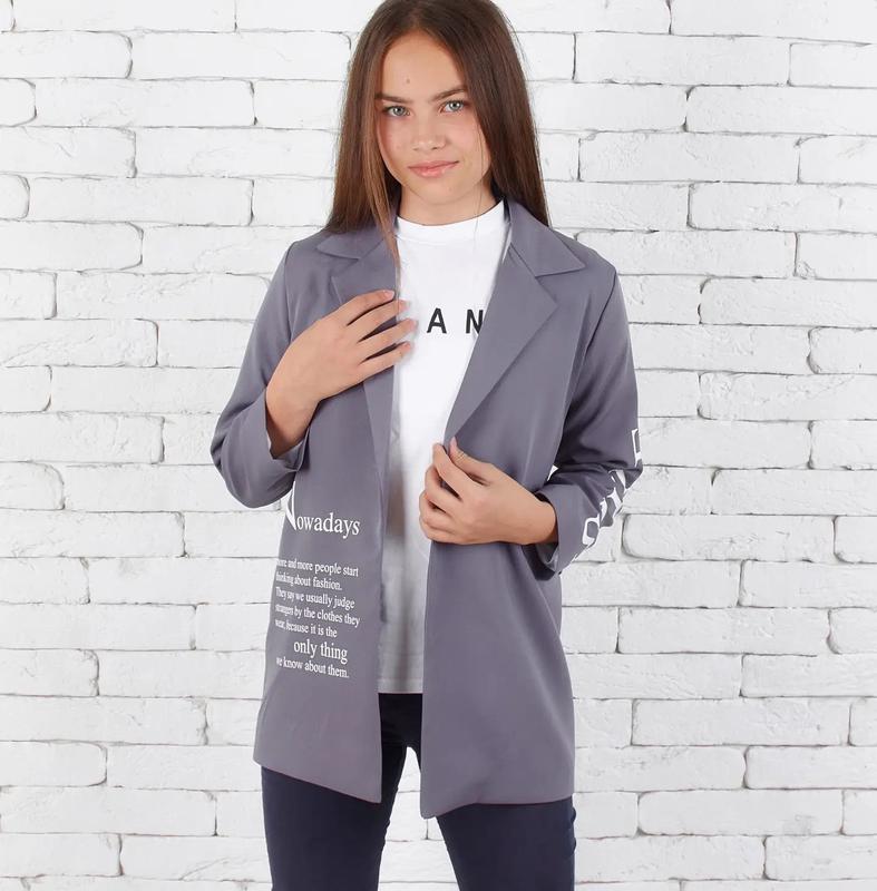 Дуже стильний блейзер на підкладці "STYLE" ⭐Тканина: костюмка хорошої якості. ⭐Колір: сірий ⭐Додатково: пояс в комплекті р. 146 - довжина 57см/ рукав 41см/ ширина по спинці 43см - р. 152 - 61см довжина/ рукав-43 см/ ширина по спинці 46см р. 158 - довжина 64см/ рукав 45см/ ширина по спинці 48см - арт 04947
