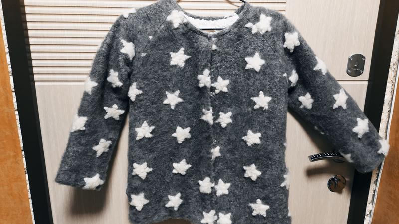 шикарный теплый кардиган.цвет серый с белыми звездами.застежка кнопки.состав на фото.фирма zara.рост 140см 9-11 лет.стан шикарное без нюансов и катышков.потери цвета нет. приглашает учесть цвет на тон светлее чем на фото. оплата почта и будь в наличии цена снижена без торга!
