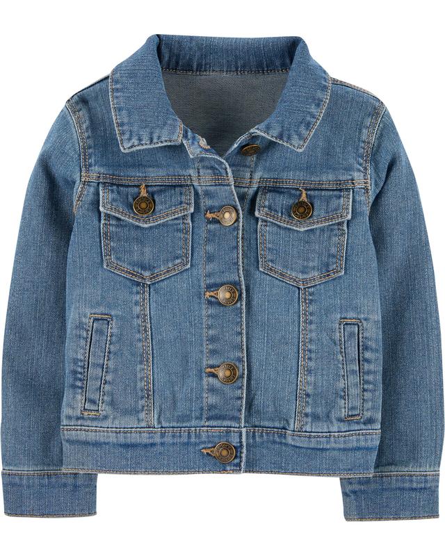 Дитяча куртка з колекції Carters. Модель виготовлена з якісного джинсового бавовни. - Кишеньки на грудях і з боків - застібається на гудзики - рукави внизу теж застегиваються на гудзики. Відмінний варіант для прохолодного літнього вечора. Склад: 99% Бавовна, 1% еластан Розмір: 5Т на зростання 105-112см ПОГ - 34см, довжина піджака від плеча - 36см, ширина між плечима - 26см, довжина рукава від горловини/від пахви - 45см/29см
