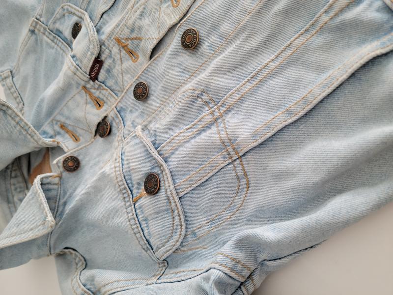 100% котон, вінтажна джинсова куртка/піджак на зріст 122. На спинці сліди фарби, які сприймаються як декор і зовсім не псують вигляду. Можна пришити на спинку якусь аплікацію або додати ще плям фарби - як декор