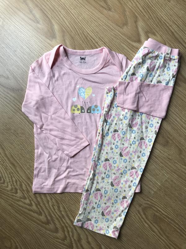 Дуже ніжна піжама для дівчинки 3-4 роки від німецького бренду Kuniboo. Повномірить, орієнтуйтеся на заміри: довжина від плеча 45 см, ширина по грудині 33 см, рукав від плеча 37 см, штани довжина 61 см, ширина по поясу 24 см резинка, шаг 44 см. Дуже якісний трикотаж👌