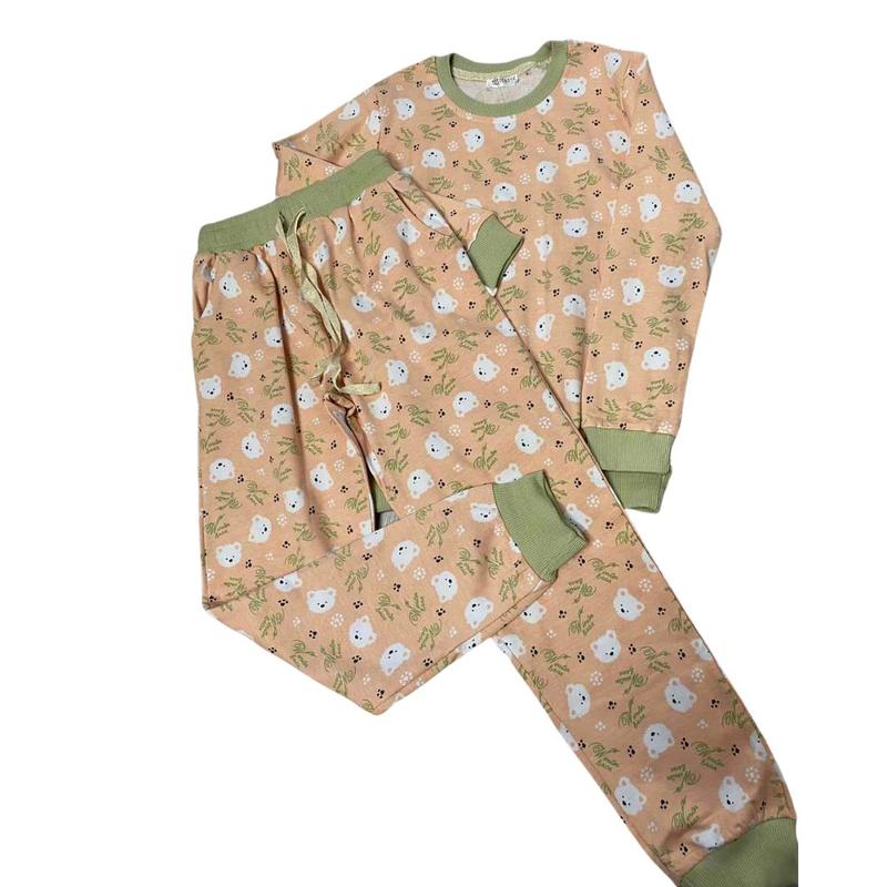 Піжама на дівчат,байка. Принт з ведмедиками. Склад:97%бавовна,3%елестан.