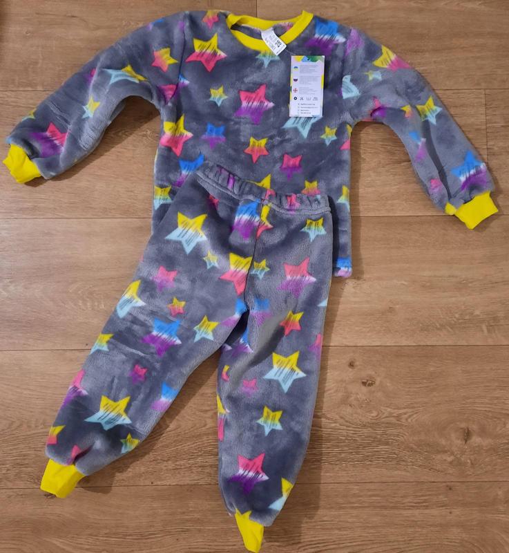 Детская пижама, изготовленная из мягкого, теплого материала. В наличии размеры: р.26 - длина свитера 38см, длина рукава - 34см, объем груди - 58см, длина брюк - 47см, обхват пояса - 44см. р.28 - длина свитера 42см, длина рукава - 37см, объем груди - 60см, длина брюк - 50см, обхват пояса - 47см. р.30 - длина свитера 43см, длина рукава - 38см, объем груди - 64см, длина брюк - 57см, обхват пояса - 50см.