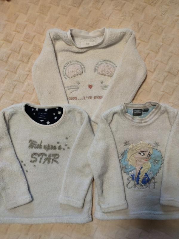 В хорошу стані. Тільки у фроузен дефекти значні на рукавах (на останньому фото). Заміри: Кофта із мишкою: Ширина плеч - 26 см Довжина рукава від плеча - 33 см Напівобхват грудей - 31 см Довжина від плеча - 36 см Кофта із написом: Ширина плеч - 24 см Довжина рукава від плеча - 32 см Напівобхват грудей - 32 см Довжина від плеча - 37 см Кофта фроузен: Ширина плеч - 25 см Довжина рукава від плеча - 32 см Напівобхват грудей - 30,5 см Довжина від плеча - 35 см