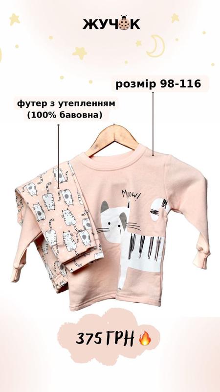 Піжама виготовлена із натурального матеріалу. Тканина м'яка та приємна до тіла, добре вбирає вологу, зберігає тепло та довго тримає свою форму. Добре підходить для демісезонного періоду. Футер з утепленням (100% бавовна) Розмір 98 рукав від плеча – 32 см ширина – 31 см довжина – 39 см штани кроковий шов – 39 см довжина – 55 см Розмір 104 рукав від плеча - 34 см ширина – 32 см довжина – 41 см штани кроковий шов – 42 см довжина – 60 см Розмір 110 рукав від плеча – 38 см ширина – 34 см довжина – 43 см штани кроковий шов – 45 см довжина – 65 см Розмір 116 рукав від плеча – 40 см ширина – 36 см довжина – 45 см штани кроковий шов – 48 см довжина – 70 см