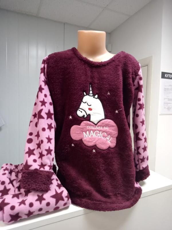 Тепла флісова поєднана з махрою піжама для дівчинки Заміри Штани: довжина 83 см по внутрішньому шву 56 Кофта: довжина по спинці 55см під пахвами 38 см рукав 43 см (по внутрішньому 35)