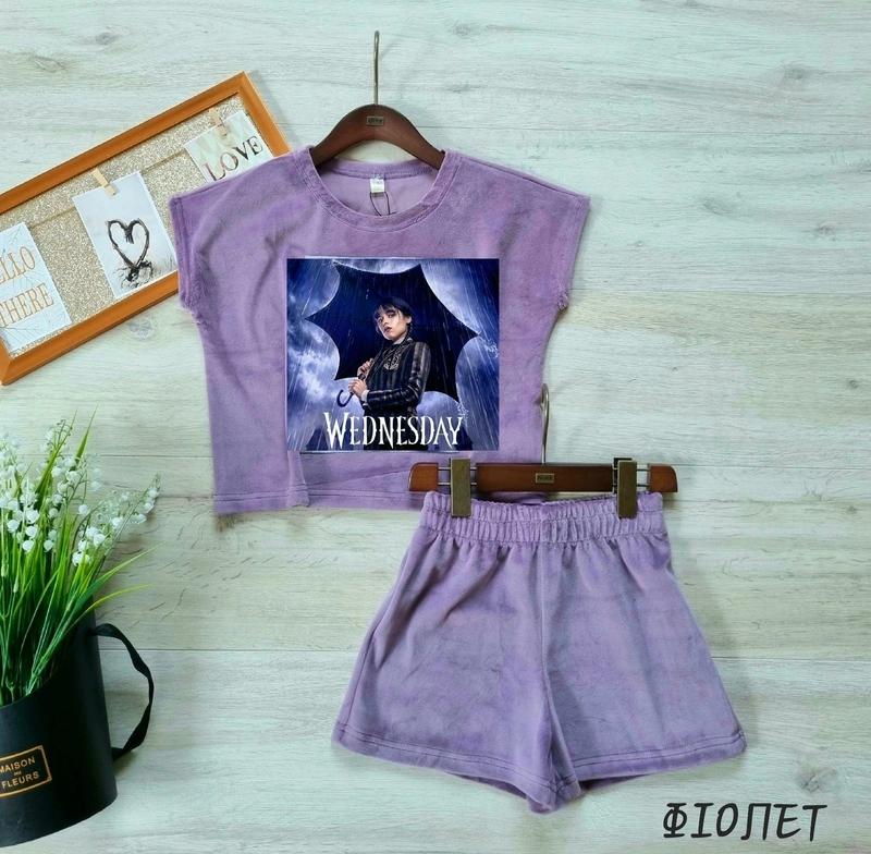 Піжама двійка футболка+шорти тканина королівський велюр прикрашена нашивкою 134(3 шт)-довжина футболки 40,пог 39,довжина шортів 27,пояс 24 140(3 шт)-довжина футболки 43,пог 42,довжина шортів 28,пояс 26 146(3 шт)-довжина футболки 45,пог 44,довжина шортів 31,пояс 27 152(2 шт )-довжина футболки 47,пог 45,довжина шортів 33,пояс 29 158(3 шт)-довжина футболки49 ,пог 47,довжина шортів 35,пояс 30 164(3 шт)-довжина футболки 52,пог 48,довжина шортів 36,пояс 3і +-2 см