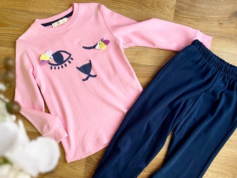 Хлопковая пижама для девочки. Состоит из кофты с длинным рукавчиком и штанишек. Прекрасно подойдет для комфортного и сладкого сна, а также как домашняя одежда. Модель выполнена из натурального высококачественного полотна. Производство Турция. Размеры: 4-5р:длина 42,пог 30,рукав 37,шт 59, крок 39. 5-6р: длина 47, пог 32,рукав 40,шт 65, крок 43.❌ 6-7р: длина 48, пог 33,рукав 42,шт 68, крок 45.❌ 7-8р: длина 50, пог 34,рукав 42,шт 71, крок 49.❌
