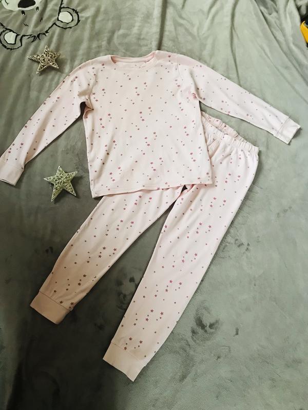 Красивая коттоновая пижама для девочки Next. Стан - идеальный. Размер 134 (8-9 лет). Кофтинка: длина по спинке 45 см ПОГ 40 см длина рукава 46 см Штани: длина по внешнему шву 76 см, по внутреннему 54 см ширина резинки в поясі 27 см. Доп. фото и замеры по требованию.