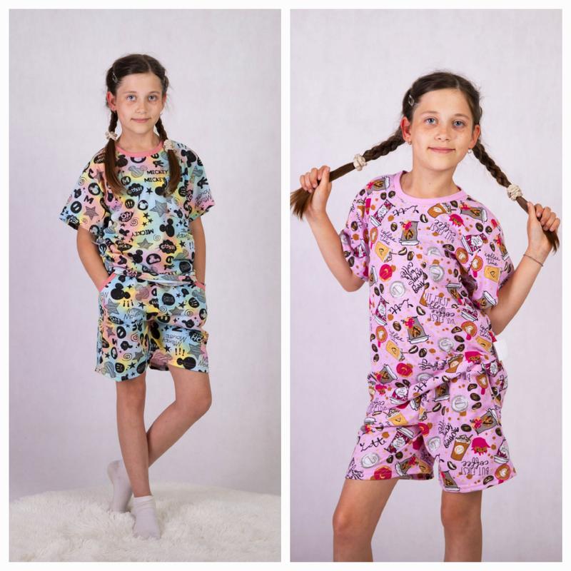 Пижама детская подростковая для девочки футболка и шорты