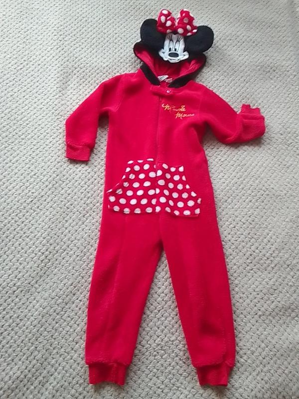 красная кенгурушка на 3-4 года. Указан размер 104. Длина от плеча до низа штанишек 75 см, ширина плеч 26 см, длина рукава 27,5 без манжета.