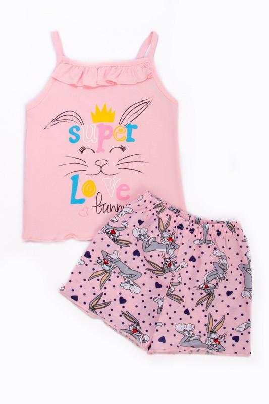Летняя пижама для девочек из натурального кулира. Модель состоит из майки-топа на тонких бретелях с рюшей по верхнему краю и ярким принтом, выполненным методом шелкотрафаретной печати, а также коротких шортиков на резинке из принтованного полотна. Кулир легкий, в меру тонкий, натуральный по составу - идеальный материал для жаркого лета. При выборе размера следует учитывать, что натуральные хлопковые полотна дают усадку после стирки. Полотно: кулир Состав: 100% хлопок. Рекомендации по уходу: стирать при температуре не более 30°C. Допускается стирка в режиме "ручная" или "деликатное", принт гладить только по изнаночной стороне.