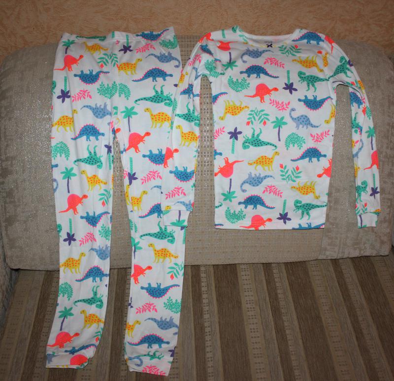Новые пижамы на девочку 10т, 9 лет, на рост 137-142см от Carters, США. Очень качественные, яркие, приятные к телу, при стирке не садятся, не скатываются. Состав-100% коттон Заказаны с официального сайта Америки На бирке 44 дол Размерная сетка Carters: 10 - 137-142 cm, 32-40 kg. замеры 10Т пижамки с динозаврами: кофта: длина 52см, рукав от плеча 51, ПОГ 33 - очень хорошо и легко тянется. штаны: длина 90 см, шаг 64см, ПОТ 30см.