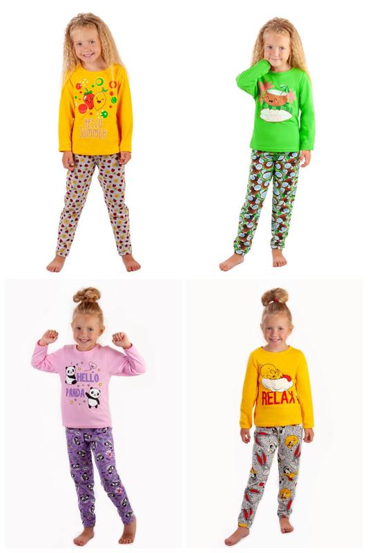 Цена зависит от размера 98-225грн 104-235грн 110-240грн 116-250грн 122-260грн 128-270грн Красивая и комфортная детская пижама выполнена в комбинации из однотонного и набивного кулира. Пижама состоит из пижамной блузы с длинными рукавами с округлой горловиной и штанишек. Пижама украшена ярким накатом, выполненным методом шелкотрафаретной печати. Комплект выполнен из трикотажного полотна "кулир". Самым тонким трикотажным полотном из хлопка считается кулирка или кулирная гладь. Одежда из нее получается очень легкая и воздушная – именно то, чего так не хватает в летнюю жару. Полотно: кулир. Состав: 100% хлопок Рекомендации по уходу: стирать при температуре не более 30°C. Допускается стирка в режиме "ручная" или "деликатное".