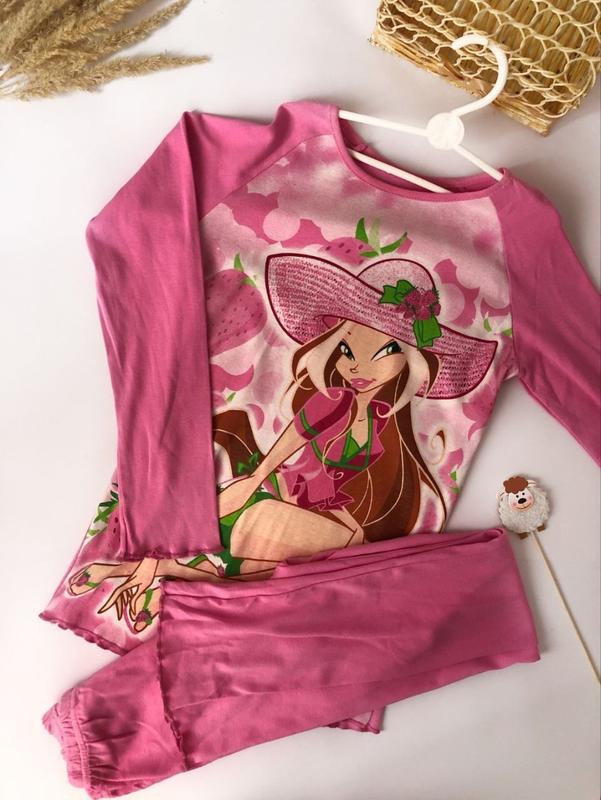 Пижама из натуральной ткани для девочек. Размер рост 140-146 см, замеры: кофта: ширина 39 см, длина 62 см, рукав 59 см; брюки: ширина 31 см, длина 94 см. Размер рост 128-134 см, замеры: кофта: ширина 36 см, длина 54 см, рукав 48 см; брюки: ширина 29 см, длина 87 см