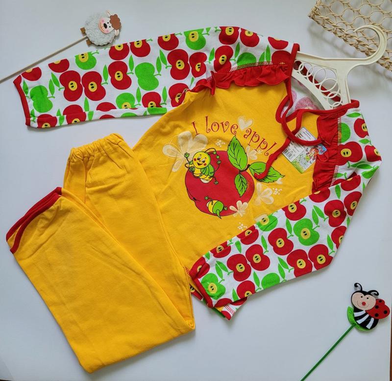 Теплая детская пижама 💤 Футер с начесом – мягкая, уютная и приятная к телу. Кофта с ярким принтом, штаны на резинке. Подходит для холодного времени года. 📏 На наборе 122/128, маломерит - ориентивно на 110–116 см. 📐 Замеры: кофта: ширина 33 см, длина 42 см, рукав 35 см штаны: ширина 30 см, длина 68 см Новая, натуральная ткань, хорошо носится и держит форму.