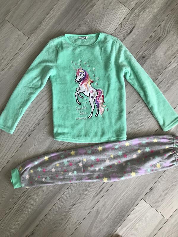 Кофта довжина 55см плечі ширина 32см рукав 51/56см пог 39см пот 39 см. Штани довжина 84см кроковий 59 см пот 29/46см поб 43см. Піджама є нова тільки без бірки